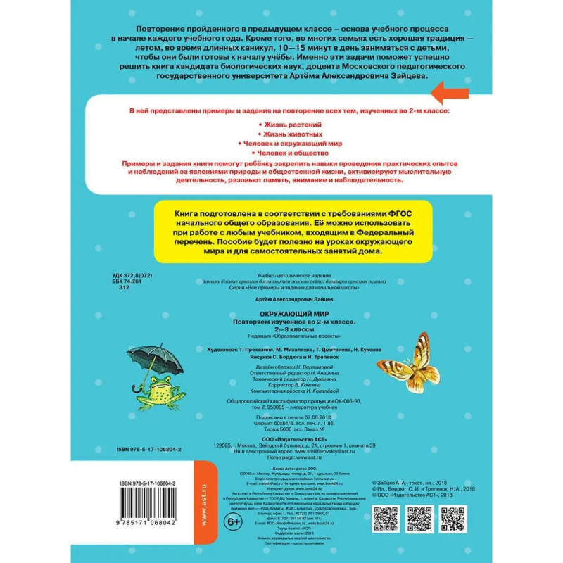 Повторение пройденного в предыдущем классе - основа учебного процесса в начале каждого учебного года. Кроме того, во многих семьях есть хорошая традиция - летом, во время длинных каникул, 1 - 15 минут в день заниматься с детьми, чтобы они были готовы к началу учебы. Именно эти задачи поможет успешно решить книга кандидата биологических наук, доцента Московского Педагогического Государственного университета Артёма Александровича Зайцева. В ней представлены примеры и задания на повторение всех тем, изученных во 2 классе: Жизнь растений, Жизнь животных, Человек и окружающий мир, Человек и общество. Примеры и задания книги помогут ребенку закрепить навыки проведения практических опытов и наблюдений за явлениями природы и общественной жизни, активизируют мыслительную деятельность, разовьют память, внимание и наблюдательность. Пособие подготовлено в соответствии с требованиями ФГОС начального образования. Его можно использовать при работе с любым учебником, входящим в Федеральный перечень. Книга будет пол