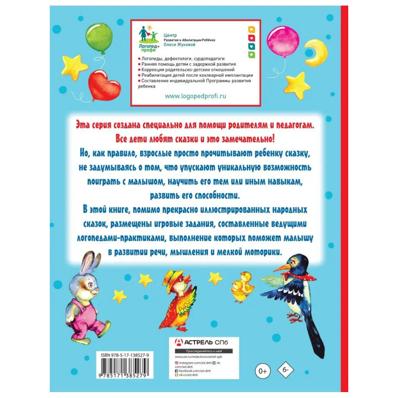 В этой книге вы найдете увлекательные задания, выполняя которые ваш малыш будет осваивать разнообразные навыки вместе с героями популярных русских сказок. Задания, подготовленные ведущими логопедами-практиками, учитывают все особенности восприятия детей раннего дошкольного возраста. Занимаясь по книге, ребенок пополнит словарный запас, разовьет речь и логическое мышление, закрепит навыки счета, потренирует мелкую моторику внимание и воображение. Для дошкольного возраста.