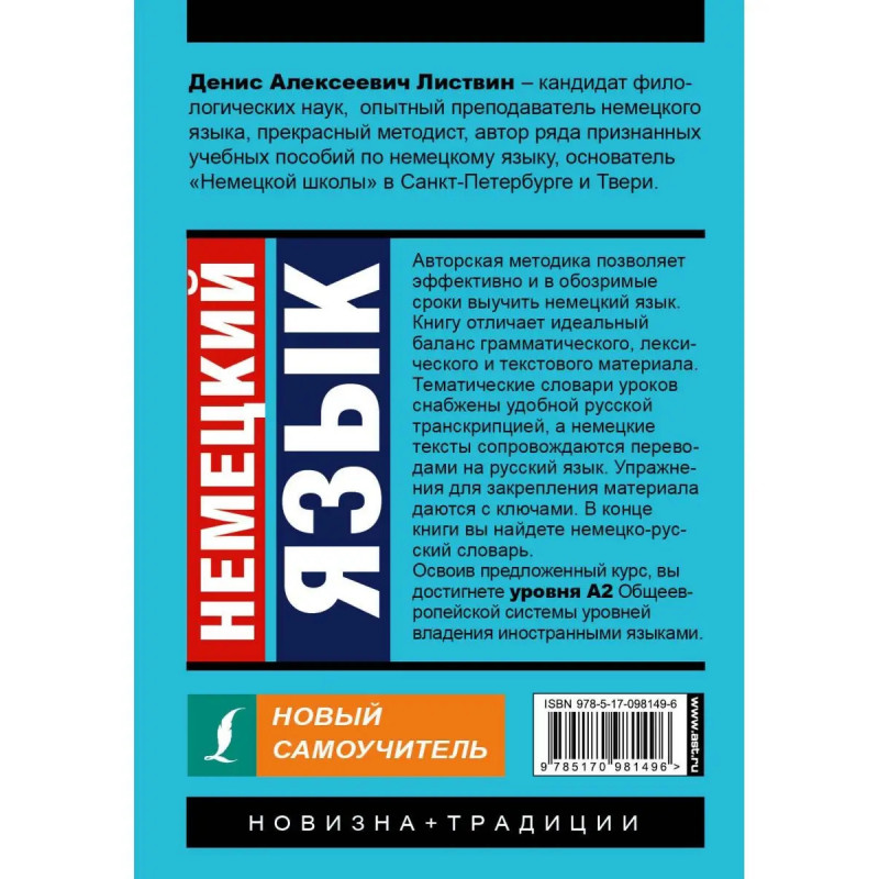 Автор книги Листвин Денис Алексеевич - опытный преподаватель немецкого языка, прекрасный методист, автор ряда признанных учебных пособий по немецкому языку, основатель Немецкой школы в Санкт-Петербурге и Твери. Его книги пользуются успехом у читателей. Немецкий язык. Новый самоучитель - книга, сочетающая в себе новизну и традиционный подход к обучению. Книгу отличает идеальный баланс грамматического, лексического и текстового материала. Авторская методика позволяет эффективно и в обозримые сроки выучить немецкий язык. Освоив данный курс, вы достигните уровня A2 Общеевропейской системы уровней владения иностранными языками.