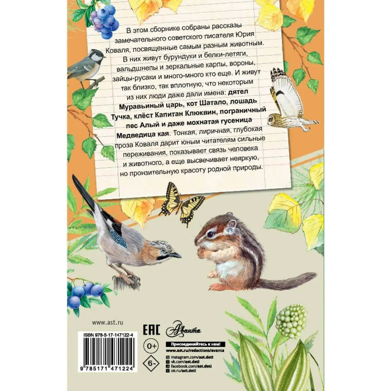 В этом сборнике собраны рассказы замечательного советского писателя Юрия Коваля, посвященные самым разным животным. В них живут бурундуки и белки-летяги, вальдшнепы и зеркальные карпы, вороны, зайцы-русаки и много-много кто еще. И живут так близко, так вплотную, что некоторым из них люди даже дали имена: дятел Муравьиный царь, кот Шатало, лошадь Тучка, клёст Капитан Клюквин, пограничный пес Алый и даже мохнатая гусеница Медведица кая. Тонкая, лиричная, глубокая проза Коваля дарит юным читателям сильные переживания, показывает связь человека и животного, а еще высвечивает неяркую, но пронзительную красоту родной природы. В сборник "Алый" замечательного советского писателя Юрия Коваля вошли лучшие его рассказы о природе и животных, адресованные юным читателям. Такие, как "Капитан Клюквин", "Шатало", "Русачок-травник", "Алый" и многие-многие другие. Эти произведения прочно вошли как в большую литературу, так и в школьную программу. Они настолько естествен- ны и чисты, что со временем ни только не утратили сво