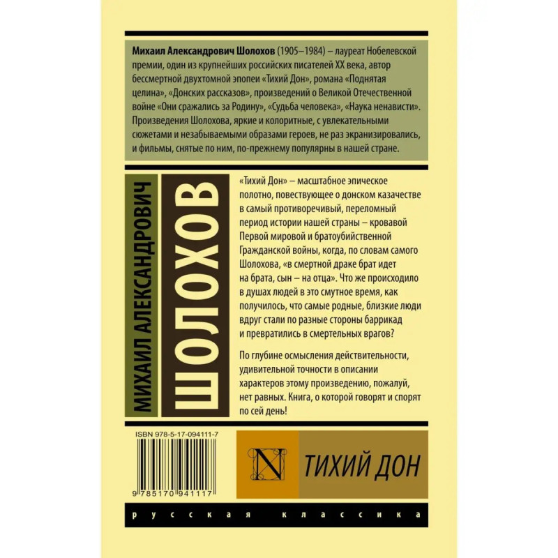 "Тихий Дон" масштабное эпическое полотно, повествующее о донском казачестве в самый противоречивый, переломный период истории нашей страны кровавой Первой мировой и братоубийственной Гражданской войны, когда, по словам самого Шол.оxова, "в смертной драке брат идет на брата, сын на отца". Что же происходило в душах людей в это смутное время, как получилось, что самые родные, близкие люди стали по разные стороны баррикад и превратились в смертельных врагов? По глубине осмысления действительности, удивительной точности в описании характеров этому произведению, пожалуй, нет равных.. Книга, о которой говорят и спорят по сей день!