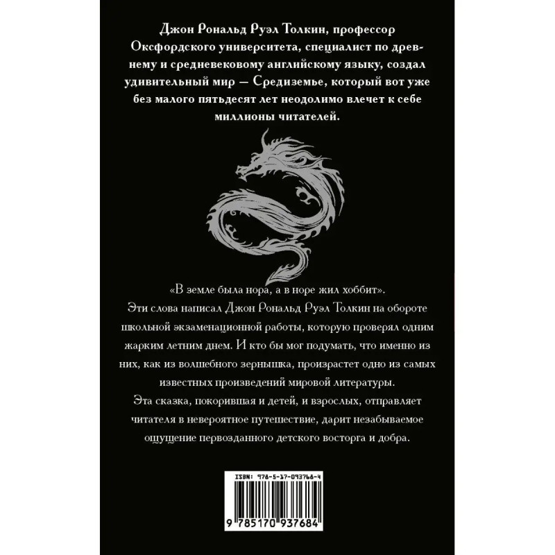 "В земле была нора, а в норе жил хоббит". Эти слова написал Джон Рональд Руэл Толкин на обороте школьной экзаменационной работы, которую проверял одним жарким летним днем. И кто бы мог подумать, что именно из них, как из волшебного зернышка, произрастет одно из самых известных произведений мировой литературы. Эта сказка, покорившая и детей, и взрослых, отправляет читателя в невероятное путешествие, дарит незабываемое ощущение первозданного детского восторга и добра.