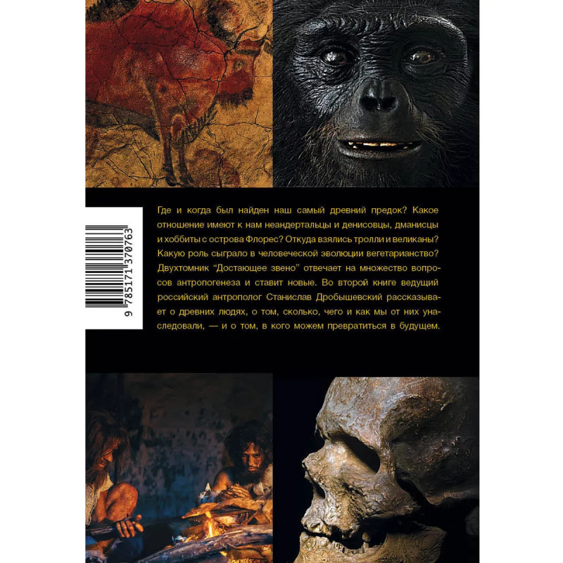 Кто был непосредственным предком человека? Как выглядит цепь, на конце которой находится Homo sapiens, и все ли ее звенья на месте? Почему некоторые находки оказываются не тем, чем кажутся поначалу? И почему разумными стали именно гоминиды, а не другиемлекопитающие?Достающее звено - история происхождения человека в двух книгах - подробно и увлекательно отвечает на эти и другие животрепещущие вопросы о нашем прошлом. Ведущий российский антрополог, научный редактор портала Антропогенез.ру и блестящий лектор Станислав Дробышевский знает об этом, вероятно, больше, чем любой другой живущий потомок палеоантропов, и как никто другой умеет заразить интересом к современной, бурно развивающейся науке, имеющей прямое отношение к каждому из нас.Во второй книге Достающего звена речь идет о древних людях, о том, сколько, чего и как мы от них унаследовали, - и о том, в кого можем превратиться в будущем.