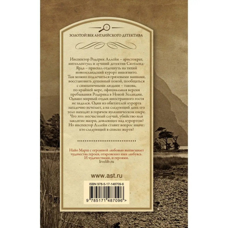 Инспектор Родерик Аллейн аристократ, интеллектуал и лучший детектив Скотленд-Ярда приехал отдохнуть на тихий новозеландский курорт инкогнито. Там можно подлечиться грязевыми ваннами, восстановить душевный покой, пообщаться с симпатичными людьми такова, по крайней мере, официальная версия пребывания Родерика в Новой Зеландии. Однако мирный отдых иностранного гостя не задался. Один из обитателей курорта загадочно исчезает, а на следующий день его тело находят в горячем вулканическом озере. Что это: несчастный случай, убийство или заклятие маори, довлеющее над курортом? Но инспектор Аллейн ставит вопрос иначе: кто следующий в списке жертв?
