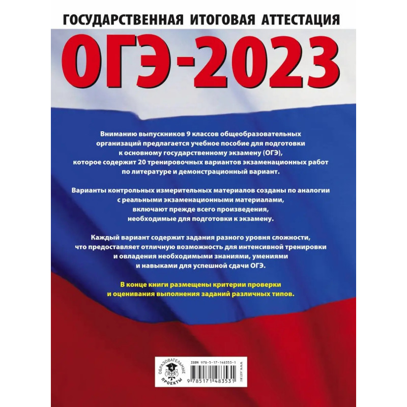 ОГЭ-2023. Литература (60x84/8). 20 тренировочных вариантов э