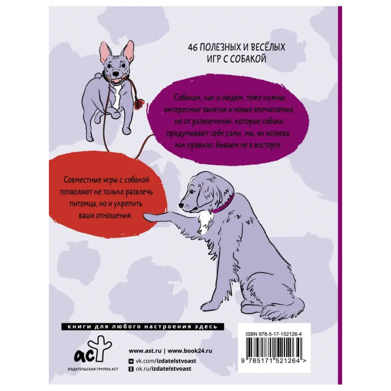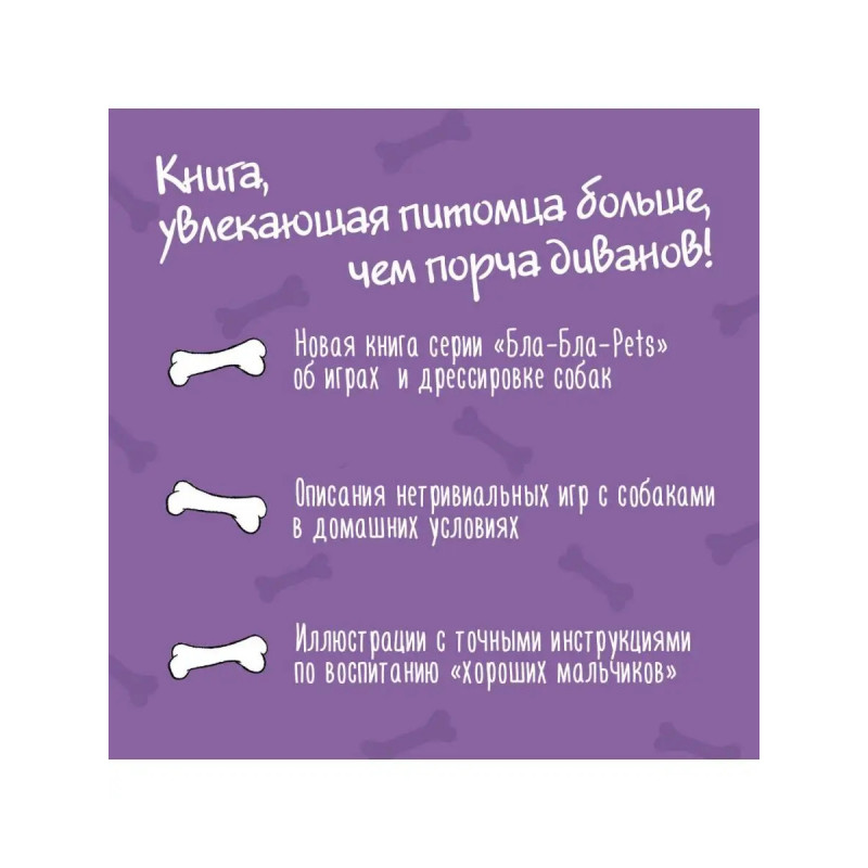 Ваш пёс развлекает себя грызением диванов, переворачиванием цветочных горшков и прочими шалостями? Предложите ему полезную альтернативу совместную игру, которая укрепит взаимную привязанность и поможет развить познавательные способности! Азартные и активные игры, а также игры для послушания и контакта пригодятся вам для дальнейшей дрессировки и обучения различным полезным в быту командам. И, конечно, подарят много ярких впечатлений! Вы научитесь выбирать безопасные игрушки, внедрять их в игровой процесс на улице и дома, понимать потребности своего любимца и прислушиваться к нему все советы от автора проиллюстрированы забавными изображениями-схемами для наглядности.
