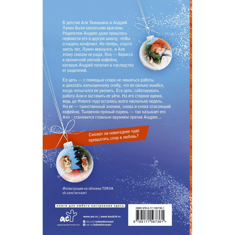 Тыквенно-пряный парень. - Новинка серии новогодних романов "Зимняя романтика". Только уютные и согревающие истории. - Предновогодние будни маленькой кофейни и страсти, кипящие за ее мирным фасадом. - Роман со вкусом любимого латте. - Яркий троп "от ненависти до любви" - история на пике эмоций. Аля и Андрей терпеть не могут друг друга - в детстве их даже пришлось развести по разным школам. Казалось бы, прощай, заклятый враг, но прошло шесть лет, и эти двое снова встретились - на этот раз в кофейне, которую унаследовал Андрей. Аля устраивается туда бариста и намерена держаться за любимую работу до конца. Цель Андрея - выжить Алю любьой ценой, но каждую его попытку это сделать срывает загадочный незнакомец, которого Аля окрестила "тыквенно-пряным парнем". Кто этот аноним? И как он исхитрится примирить заклятых врагов? Все подробности - в романе Соль Валентайн.