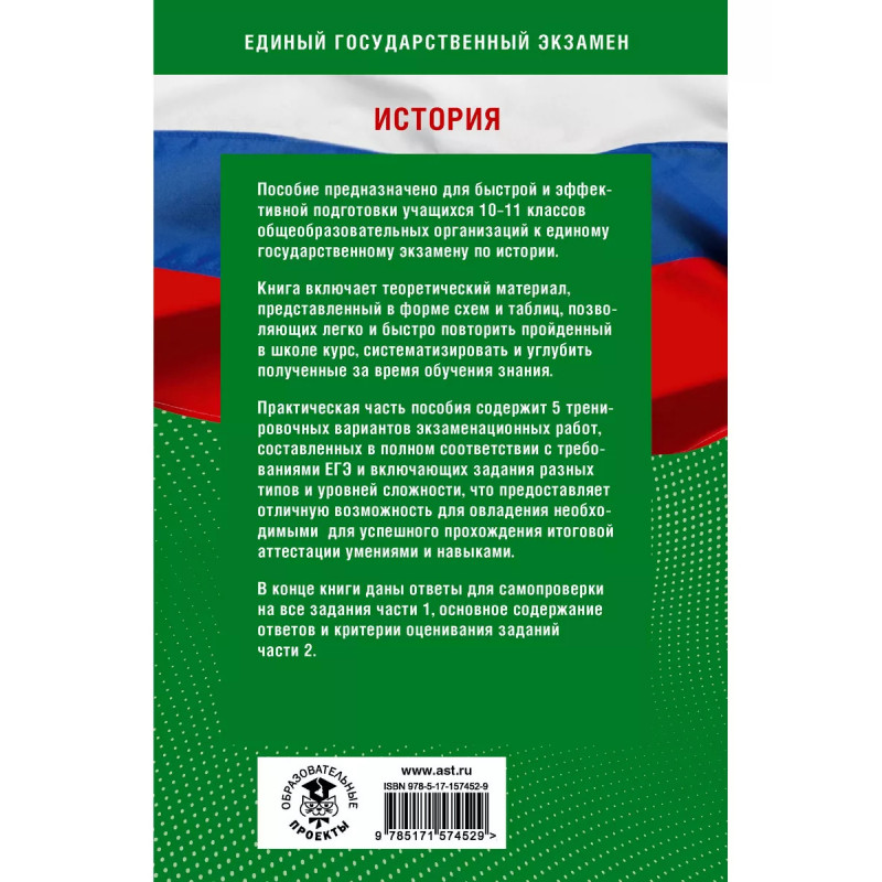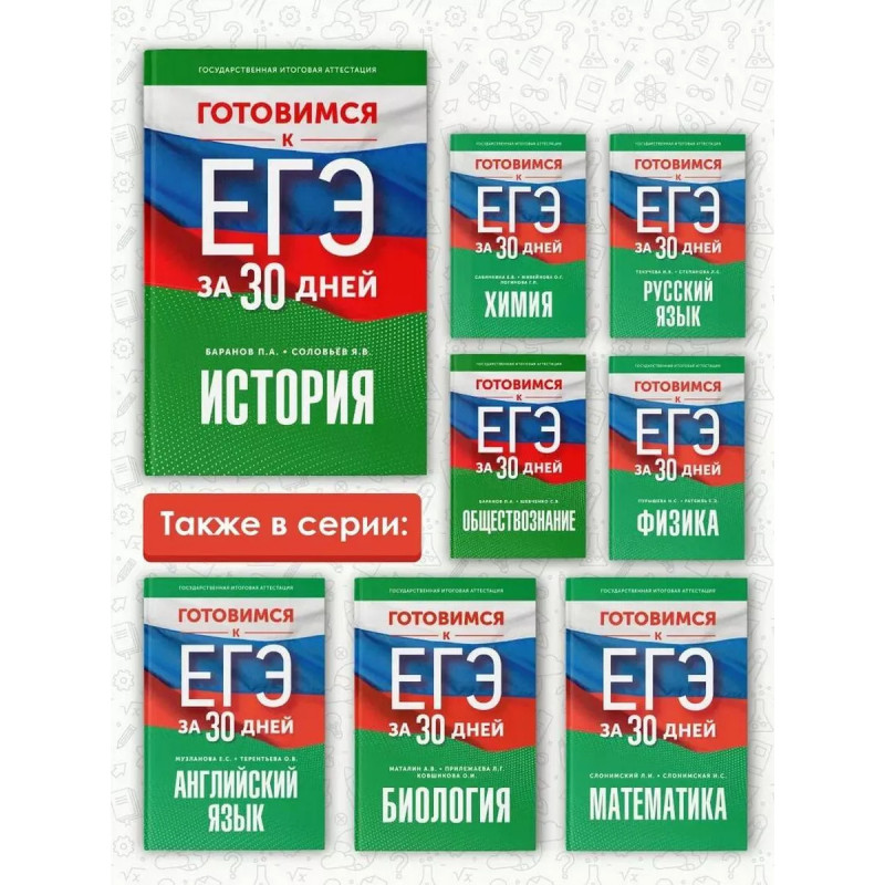 Готовимся к ЕГЭ за 30 дней. История. Пособие предназначено для быстрой и эффективной подготовки учащихся 1 - 11 классов общеобразовательных организаций к единому государственному экзамену по истории. Книга включает теоретический материал, представленный в форме схем и таблиц, позволяющих легко и быстро повторить пройденный в школе курс, систематизировать и углубить полученные за время обучения знания. Практическая часть пособия содержит 5 тренировочных вариантов экзаменационных работ, составленных в полном соответствии с требованиями ЕГЭ и включающих задания разных типов и уровней сложности, что предоставляет отличную возможность для овладения необходимыми для успешного прохождения итоговой аттестации умениями и навыками. В конце книги даны ответы для самопроверки на все задания части 1 и основное содержание ответов и критерии оценивания на задания части 2.