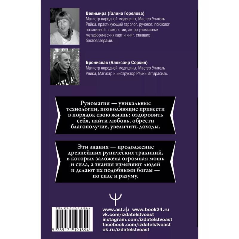 Руномагия. Обретение силы. Любовь, здоровье, деньги и мощь рунических мандал. Руномагия - уникальные технологии, позволяющие привести в порядок свою жизнь: оздоровить себя, найти любовь, обрести благополучие, увеличить доходы. Эти знания являются продолжением древнейших рунических традиций, в которых заложена огромная мощь и сила, а знания изменяют людей и делают их подобными богам - по силе и разуму. Каждый новый шаг в руномагии усиливает, укрепляет разум и раскрывает сердце. Велимира и Бронислав - Магистры народной медицины, Мастера Рейки, рунологи, авторы книг, ставших национальными бестселлерами.