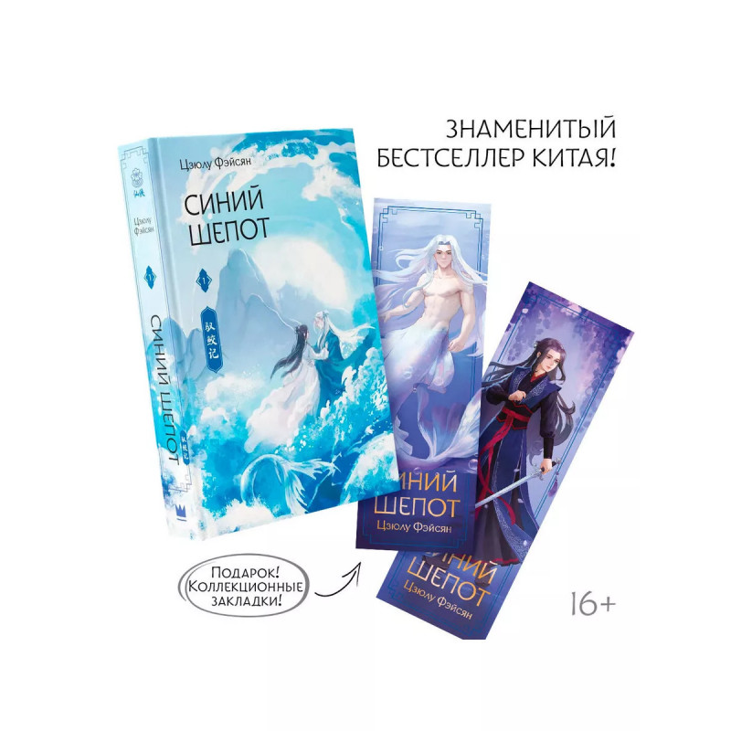 Синий шепот. Книга 1 (с коллекционными закладками). " Знаменитый роман в жанре сянься. Цзюлу Фэйсян - одна из самых читаемых авторов в жанре фэнтези в Китае. " Коллекционные закладки в подарок! " Захватывающее хитросплетение интриг и неожиданные развязки. Яркие и запоминающиеся герои, которые непременно разобьют сердце и влюбят в себя. " Роман лег в основу одной из самых популярных дорам в 2 сезонах! Главные роли сыграли знаменитые китайские актеры Дильраба Дильмурат и Жэнь Цзялунь. " На форзаце и нахзаце подробная схема и описание персонажей, внутри разворачивающаяся вклейка с детальной картой и иллюстрациями героев.