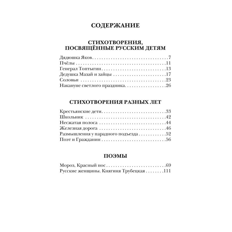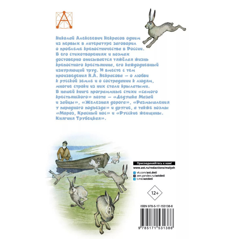 Дедушка Мазай и зайцы. Стихотворения. Поэмы. Николай Алексеевич Некрасов одним из первых в литературе заговорил о проблеме крепостничества в России. В его стихотворениях и поэмах достоверно описывается тяжёлая жизнь крепостного крестьянина, его каждодневный изнуряющий труд. И вместе с тем произведения Н.А. Некрасова - о любви к русской земле и о сострадании к людям, многие строки из них стали крылатыми. В нашей книге программные стихи "самого крестьянского" поэта - "Дедушка Мазай и зайцы", "Железная дорога", "Размышления у парадного подъезда" и другие, а также поэмы "Мороз, Красный нос" и "Русские женщины. Княгиня Трубецкая".
