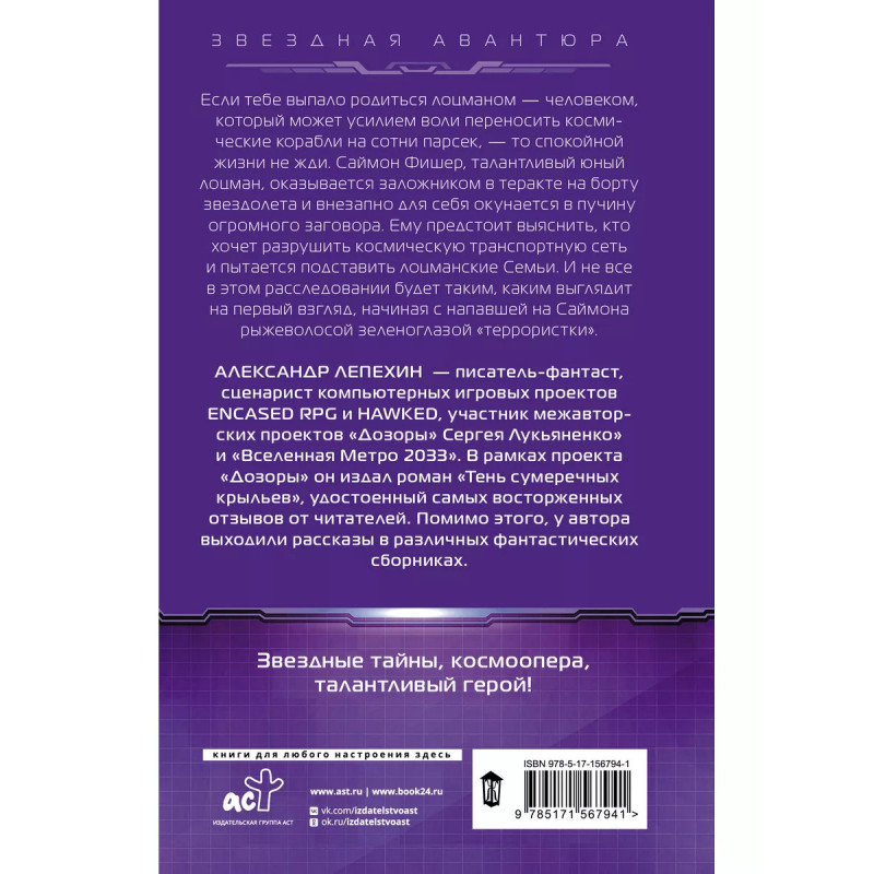 Тропа до звезд. Если тебе выпало родиться лоцманом - человеком, который может усилием воли переносить космические корабли на сотни парсек, - то спокойной жизни не жди. Саймон Фишер, талантливый юный лоцман, оказывается заложником в теракте на борту звездолета и внезапно для себя окунается в пучину огромного заговора. Ему предстоит выяснить, кто хочет разрушить космическую транспортную сеть и пытается подставить лоцманские Семьи. И не все в этом расследовании будет таким, каким выглядит на первый взгляд, начиная с напавшей на Саймона рыжеволосой зеленоглазой "террористки".