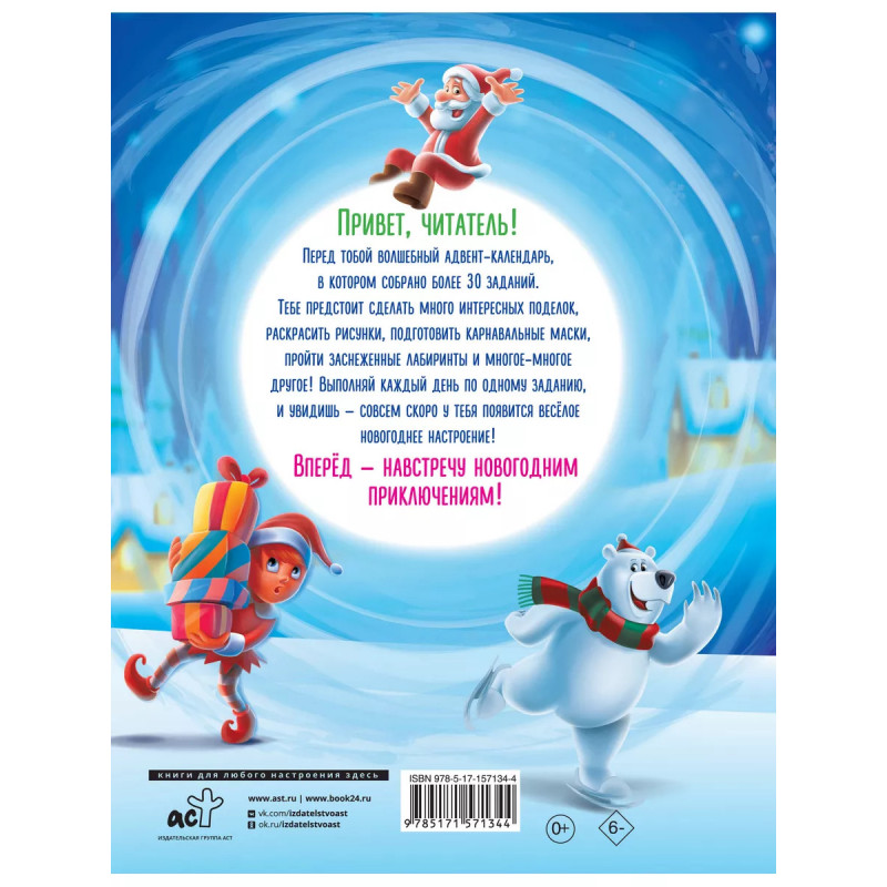 Встречаем Новый год. Адвент-календарь. 30 дней в ожидании чуда, или всё что нужно для создания волше. "А когда придёт Дедушка Мороз?" - начинают спрашивать дети чуть ли не с начала декабря. Родителям хочется превратить ожидание малыша в праздник. Поможет в этом адвент-календарь "Встречаем Новый год. Адвент-календарь. 3 дней в ожидании чуда, или всё что нужно для создания волшебной атмосферы". Под обложкой - 31 интересное новогоднее задание для ребёнка на каждый день. Ребёнок научится делать новогодние игрушки из бумаги, сможет пройти запутанные снежные лабиринты, украсит вкусную новогоднюю выпечку и многое другое! Мамы и папы могут помочь малышу с выполнением заданий. Игры с адвент-календарём это не только весело, но ещё и полезно. Малыш разовьёт внимательность, мелкую моторику, аккуратность, мышление, логику, воображение и эмоциональный интеллект. Будьте уверены, праздничная атмосфера гарантирована!