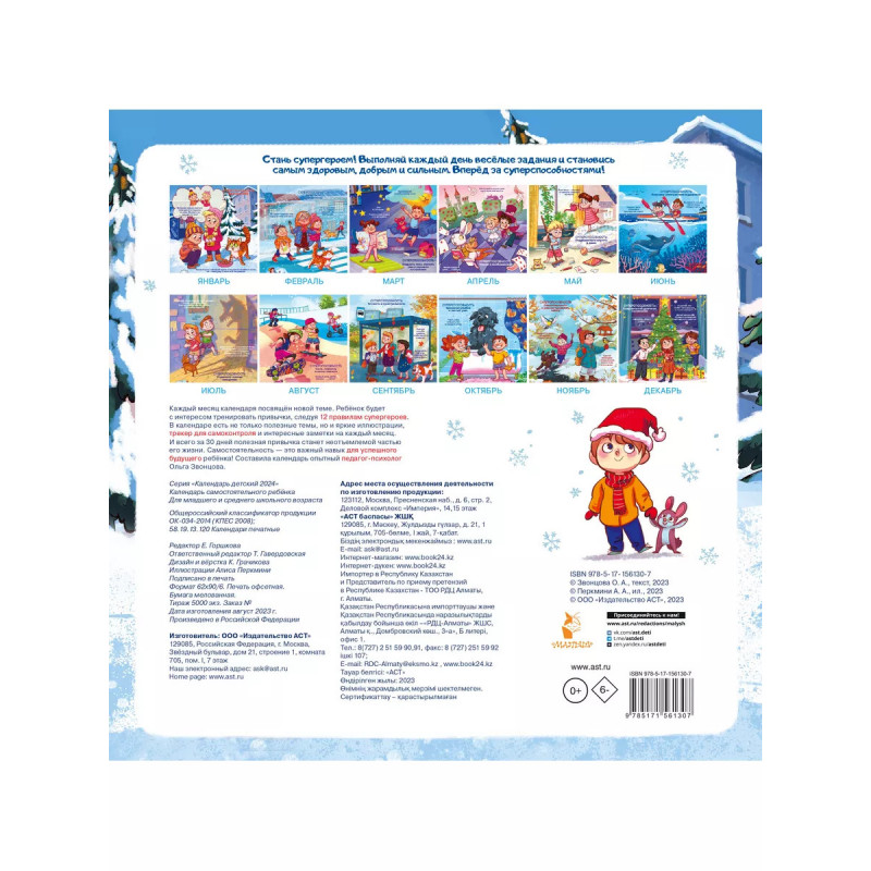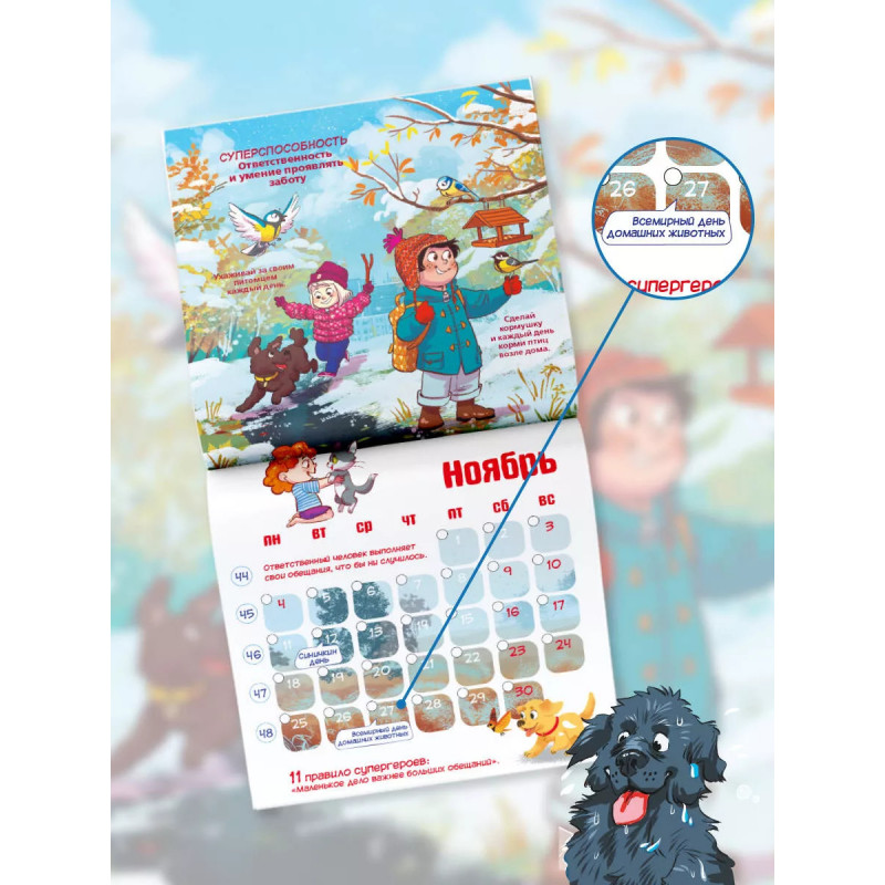 Календарь самостоятельного ребенка. Стать супергероем легко! Выполняй каждый день весёлые задания, тренируй полезные привычки и становись самым здоровым, добрым и сильным. Яркие иллюстрации, трекер для самоконтроля, интересные заметки - все это ты найдешь в этом календаре. Вперёд за суперспособностями!