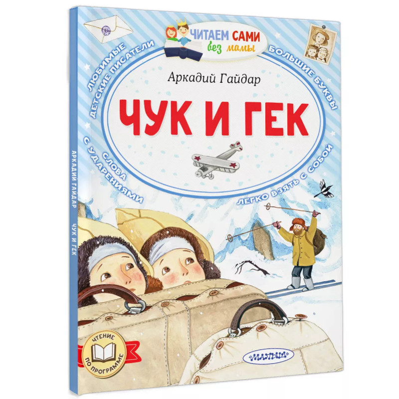 Чук и Гек. Классика может быть интересной! Книги серии "Читаем сами без мамы" - это уникальное собрание золотого фонда отечественной литературы! Сказки, стихи рассказы с красочными иллюстрациями понравятся каждому малышу! Все произведения серии входят в обязательную программу по чтению, а крупный шрифт и ударения помогут ребёнку самостоятельно познакомиться с шедеврами детской мировой литературы. В этой книге юные читатели прочитают произведение А. Гайдара "Чук и Гек". Вместе с героями истории ребята переживут весёлые приключения и научатся дружбе, доброте и заботе о близких. Читайте с пользой и удовольствием!
