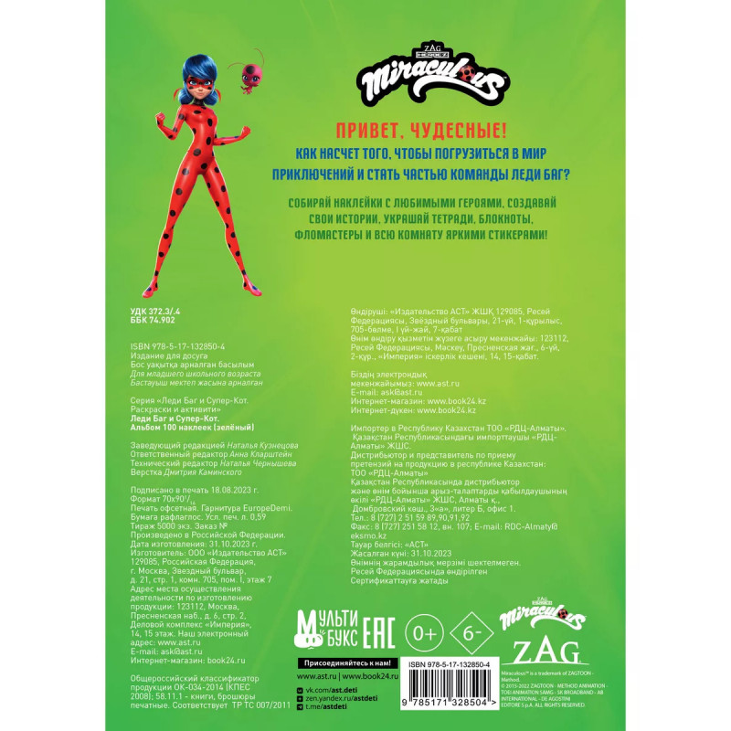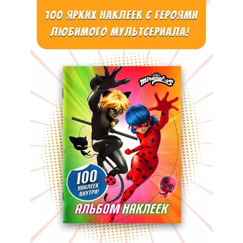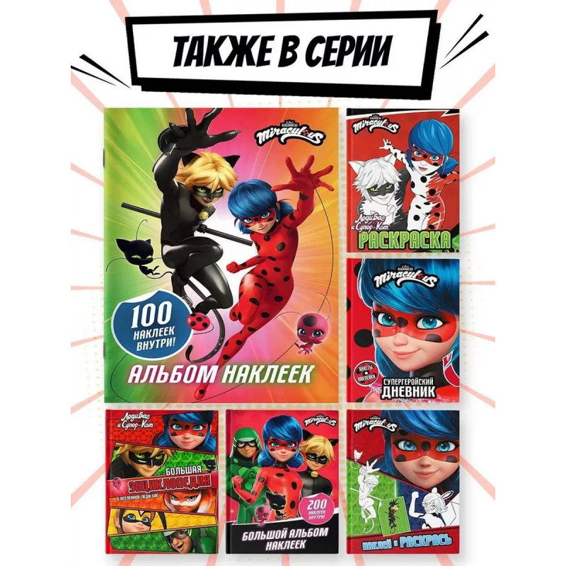 Леди Баг и Супер-Кот. Альбом 100 наклеек (разноцветный). Привет, чудесные! Как насчет того, чтобы погрузиться в мир приключений и стать частью команды Леди Баг? Собирай наклейки с любимыми героями, создавай свои истории, Украшай тетради, блокноты, фломастеры и всю комнату яркими стикерами!