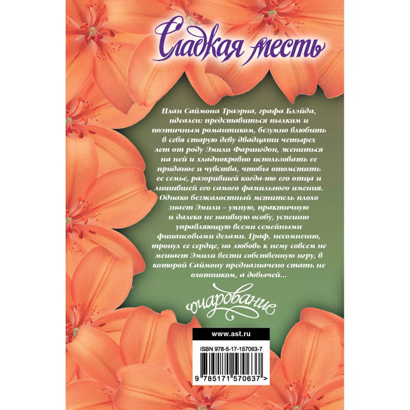Сладкая месть. План Саймона Траэрна, графа Блэйда, идеален: представиться пылким и поэтичным романтиком, безумно влюбить в себя старую деву двадцати четырех лет от роду Эмили Фарингдон, жениться на ней и хладнокровно использовать ее приданое и чувства, чтобы отомстить ее семье, разорившей когда-то его отца и лишившей его самого фамильного имения. Однако безжалостный мститель пл.оxо знает Эмили - умную, практичную и далеко не наивную особу, успешно управляющую всеми семейными финансовыми делами. Граф, несомненно, тронул ее сердце, но любовь к нему совсем не мешает Эмили вести собственную игру, в которой Саймону предназначено стать не охотником, а добычей...
