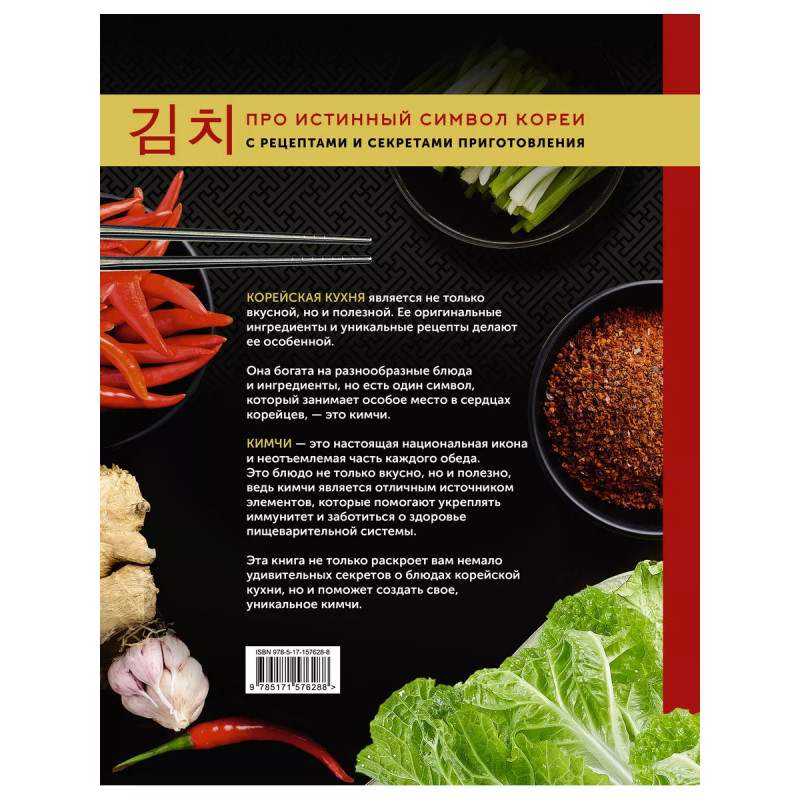Кимчи. Символ корейской кухни.. Корейская кухня является не только вкусной, но и полезной. Ее оригинальные ингредиенты и уникальные рецепты делают ее особенной. Она богата на разнообразные блюда и ингредиенты, но есть один символ, который занимает особое место в сердцах корейцев - это кимчи. Кимчи - это настоящая национальная икона и неотъемлемая часть каждого обеда. Это блюдо не только вкусно, но и полезно, ведь кимчи является отличным источником элементов, которые помогают укреплять иммунитет и заботиться о здоровье пищеварительной системы. Эта книга не только раскроет вам немало удивительных секретов о блюдах корейской кухни, но и поможет создать своё уникальное кимчи.