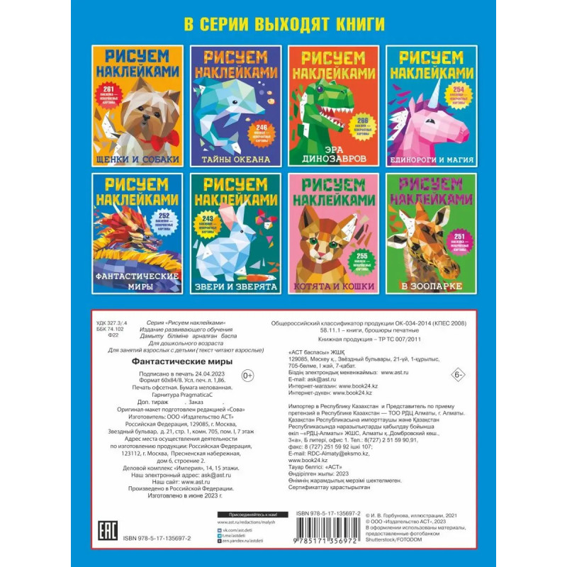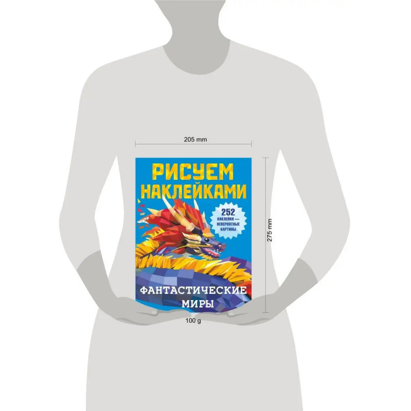 В новой серии книг Рисуем наклейками игровые задания с геометрическими стикерами, необыкновенно популярные во всем мире. В уникальной книжке ребята увидят животных фантастического мира, которых можно раскрасить стикерами, подобрав наклейки по номерам. Юным художникам обязательно понравятся интересные задания на развитие логики, памяти, внимания, мелкой моторики. Книжка для всех, кто любит рисовать и своими руками создавать коллажи из наклеек. Картины с самоклеящимися стикерами яркое, интересное творчество, которое обязательно придется по вкусу каждому ребенку. Раскраски-мозаики разделены на геометрические фигурки и напоминают пиксельные картинки. Подбираем нужные наклейки для каждого фрагмента и получается объёмное изображение. Это кропотливое занятие, требующее внимательности и терпения. Немного усердия и собранный ребенком шедевр станет хорошим украшением интерьера его комнаты или замечательным подарком для друга. Красочные иллюстрации + более 25 геометрических стикеров. Рисуем наклейка