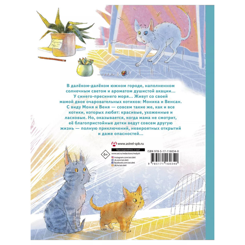 Моня и Веня: котики, которых любят. В далёком-далёком южном городе, наполненном солнечным светом и ароматом душистой акации У синего-пресинего моря Живут со своей мамой двое очаровательных котиков: Моника и Венсан. С виду Моня и Веня - совсем такие же, как и все котики, которых любят: красивые, ухоженные и ласковые. Но, оказывается, когда мама не смотрит, её благопристойные детки ведут совсем другую жизнь - полную приключений, невероятных открытий и даже опасностей...