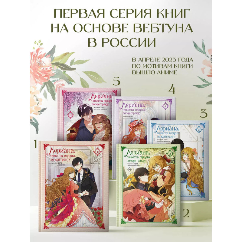 Лериана, невеста герцога по контракту. Том 5. Продолжение увлекательной истории очаровательной Лерианы Макмиллан! Книга собрала тысячи восторженных отзывов на популярной корейской платформе Kakao Page! В апреле 2023 года по мотивам книги вышло аниме! Планируется выход 2-го сезона! Понравится поклонникам исекаи - историй с перерождением. Захватывающий сюжет, яркие персонажи и красиве иллюстрации - оторваться невозможно!