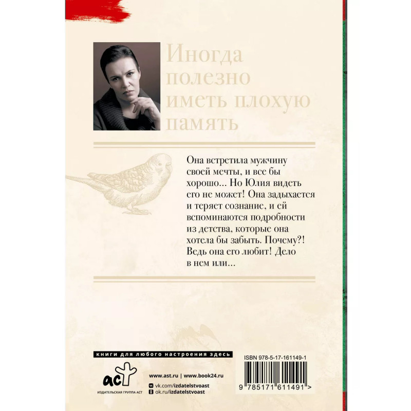 Иногда полезно иметь пл.оxую память. - Детектив в удобном карманном формате. - Продано более 6 000 000 книг автора! - Анна Малышева - популярная писательница в жанре остросюжетной прозы, автор бестселлеров "Кукольный домик", "Черная вдова", "Железный лес" и многих других. Пылкие чувства юной девушки, любовь с первого взгляда всё ли так волшебно, как кажется поначалу Юлии? Любовь пришла в жизнь к Юлии вместе с убийством и опасностями, к которым Юлия была не готова. Будет ли счастливый конец у этой остросюжетной истории любви?
