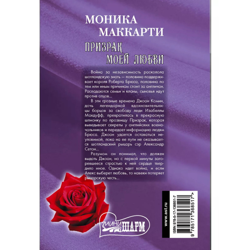 Призрак моей любви. Война за независимость расколола шотландскую знать, - половина поддерживает короля Роберта Брюса, половина, по тем или иным причинам, стоит за англичан. Распадаются семьи и кланы, сыновья идут против отцов... В эти грозные времена Джоан Комин, дочь легендарной вдохновительницы борцов за свободу леди Изабеллы Макдуфф, превратилась в прекрасную шпионку по прозвищу Призрак, которая выведывает секреты у английских военачальников и передает информацию людям Брюса. Джоан удается оставаться неуловимой, пока на ее пути не оказывается шотландский рыцарь сэр Александр Сетон... Разумом он понимал, что должен выдать Джоан, но с первой минуты загоревшееся страстью к ней сердце твердило иное. Однако идет война, и если Алекс выберет любовь, то навеки потеряет рыцарскую честь...