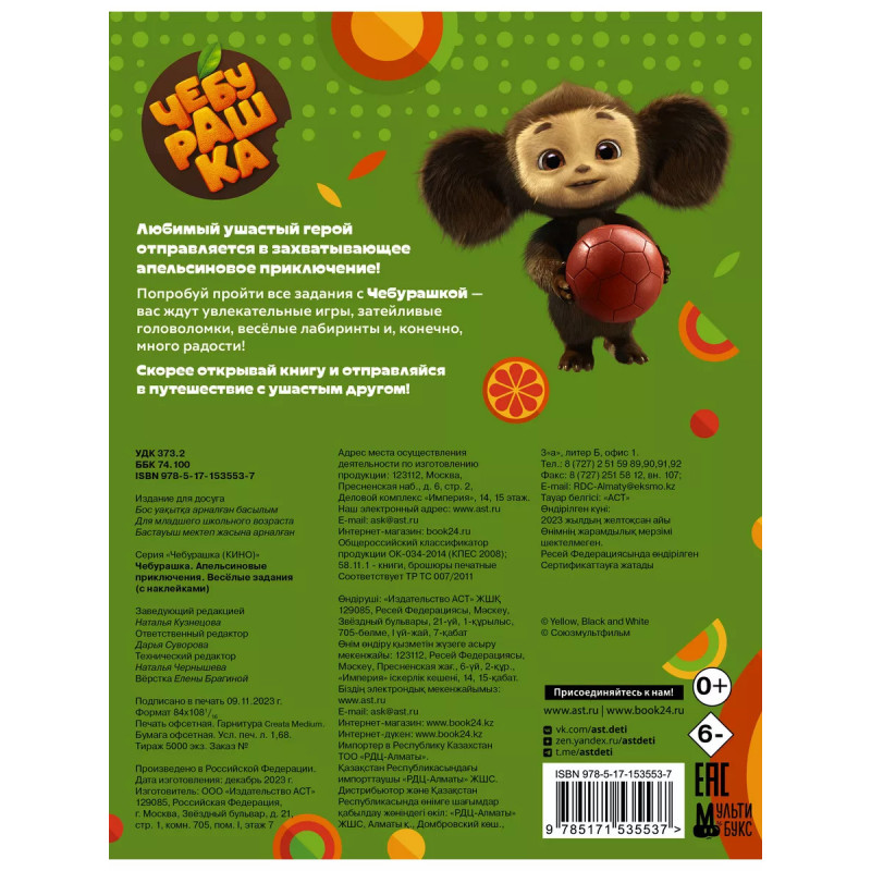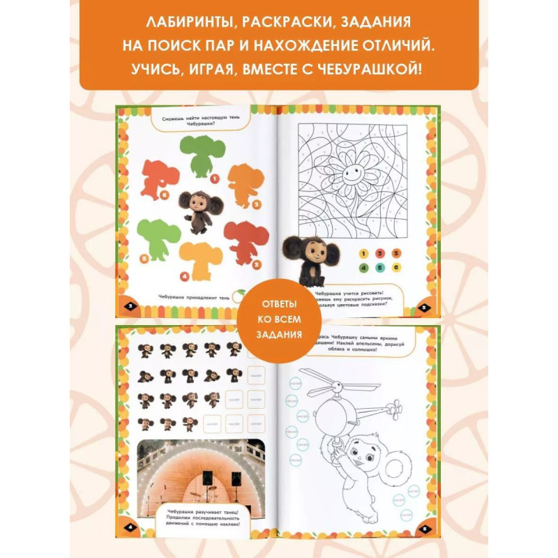 Характеристики Чебурашка. Апельсиновые приключения. Весёлые задания (с накл