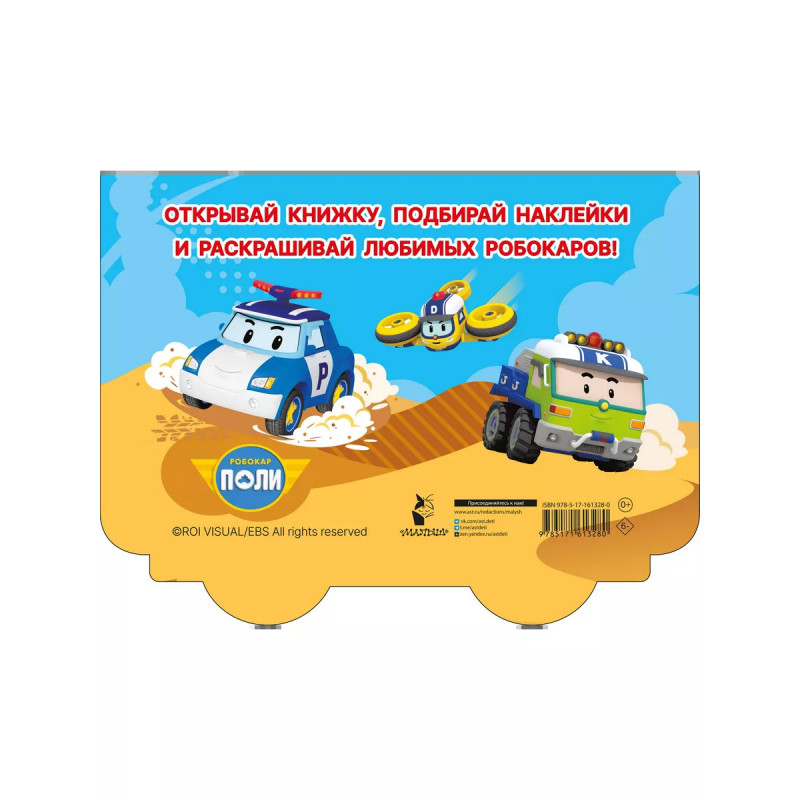 Полицейская машина Робокар Поли. В серии "Суперкнижки с наклейками" - картинки из любимого мультика + коллекция наклеек. На страницах раскраски - Робокар Поли, вертолётик Хелли, пожарный Рой, скорая помощь Эмбер, трюковая горная машина Марк, горный спасатель автомобиль Баки, подъёмный кран Лекки, грузовичок Бенни, школьный автобус Скулби, экскаватор Пок, почтовый автомобиль Пости, бульдозер Брунер, электрический автомобильчик Роди, бетономешалка Микки, контейнеровоз Терри и другие машинки. Раскрашивать картинки по образцу интересно и очень полезно - такие занятия расширяют кругозор и словарный запас, формируют графические навыки, тренируют глазомер, развивают мышление, память, внимание, наблюдательность и творческие способности. Помогите ребенку раскрасить картинки цветными карандашами, маркерами и мелками, красками и линерами - подарите малышу счастливые минуты совместного творчества. Малыш постарается всё сделать аккуратно - и у него обязательно получатся замечательные мульти-пульти картинки!