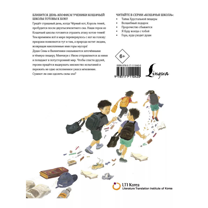 Кошачья школа: Пророчество сбывается. Мало кто знает, что, когда кошкам исполняется 15 лет, они уходят из дома человека в особенную Кошачью школу. В этой школе всё совсем не как у людей - например, на уроках обязательно нужно играть, чесать за ухом и вылизывать шерсть. А ещё в этой школе учат магии! В третьей части серии "Кошачья школа" вы узнаете, что случилось с Почтовым Ящиком, на которого напали коты-тени, и в каком обличье вернётся куда-то исчезнувший Цао Цао. В то же время Минчжуна и кота по имени Ив ждут полные опасностей приключения. Им удастся раскрыть загадку Сфинкса в Стране Кремнёвого Светила. Эта захватывающая история обещает ещё много сюрпризов и неожиданных поворотов сюжета. Это первое издание на русском языке мирового бестселлера для детей "Кошачья школа", отмеченного литературными наградами в Южной Корее, Франции, Швейцарии и Словакии.
