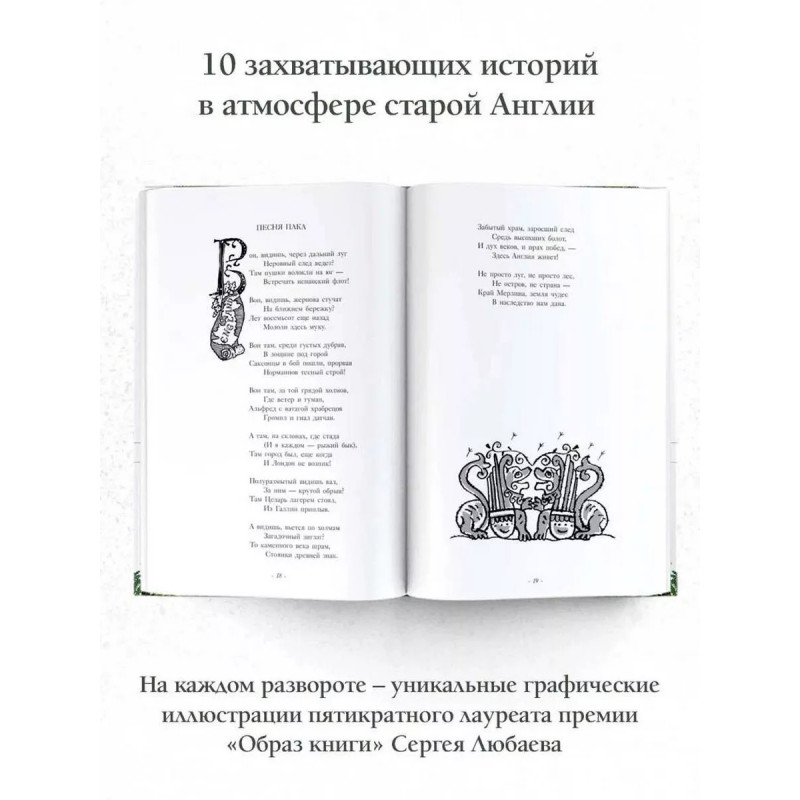 Пак с волшебных холмов с иллюстрациями Сергея Любаева.. Книга нобелевского лауреата по литературе Редьярда Киплинга "Пак с волшебных холмов" уже больше века радует читателей всех возрастов, погружая их в атмосферу старой, сказочной Англии. В краю Мерлина, на земле чудес уже тысячи лет живёт мудрый эльф - Пак. За свою жизнь он был свидетелем многих исторических и сказочных событий. И теперь он готов рассказать детям самые невероятные истории.
