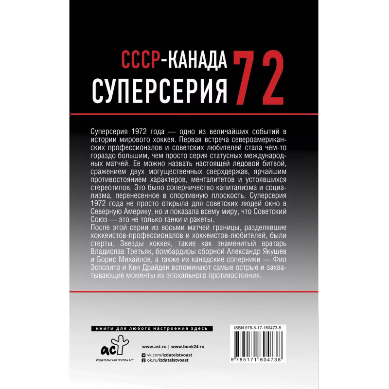 Суперсерия 72. СССР-Канада: история самого невероятного хоккейного противостояния. Суперсерия 1972 года - одно из величайших событий в истории мирового хоккея. Первая встреча североамериканских профессионалов и советских любителей стала чем-то гораздо большим, чем просто серия статусных международных матчей. Ее можно назвать настоящей ледовой битвой, сражением двух могущественных сверхдержав, ярчайшим противостоянием характеров, менталитетов и устоявшихся стереотипов. Это было соперничество капитализма и социализма, перенесенное в спортивную плоскость. Суперсерия 1972 года не просто открыла для советских людей окно в Северную Америку, но и показала всему миру, что Советский Союз - это не только танки и ракеты. После этой серии из восьми матчей границы, разделявшие хоккеистов-профессионалов и хоккеистов-любителей, были стерты. Самые яркие воспоминания участников этого невероятного противостояния собраны в этой книге c помощью Третьяка, Якушева , Драйдена и др. Книга для тех, кто любит футбол и спорт.