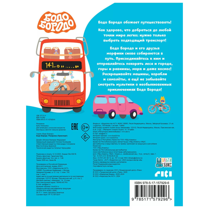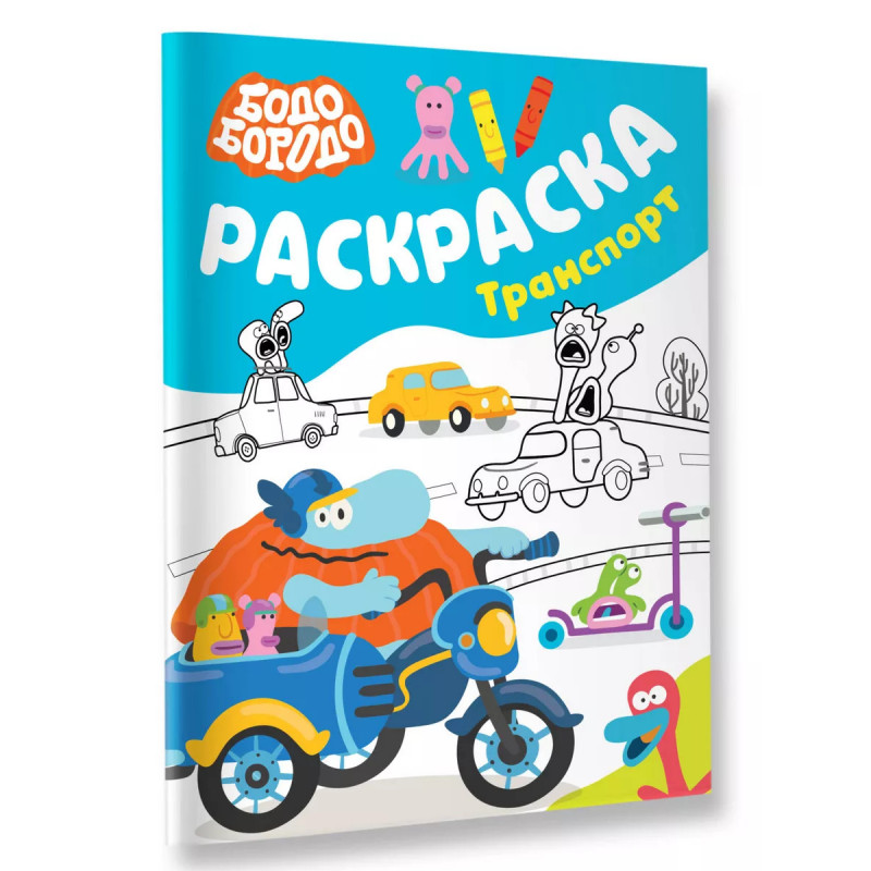 Бодо Бородо. Раскраска (Транспорт). Бодо Бородо обожает путешествовать! Как здорово, что добраться до любой точки мира легко: нужно только выбрать подходящий транспорт! Бодо Бородо и его друзья морфики снова собираются в путь. Присоединяйтесь к ним и отправляйтесь покорять леса и города, горы и равнины, моря и даже космос! Раскрашивайте машины, корабли и самолёты, а ещё не забывайте смотреть мультики о необыкновенных приключениях Бодо Бородо!
