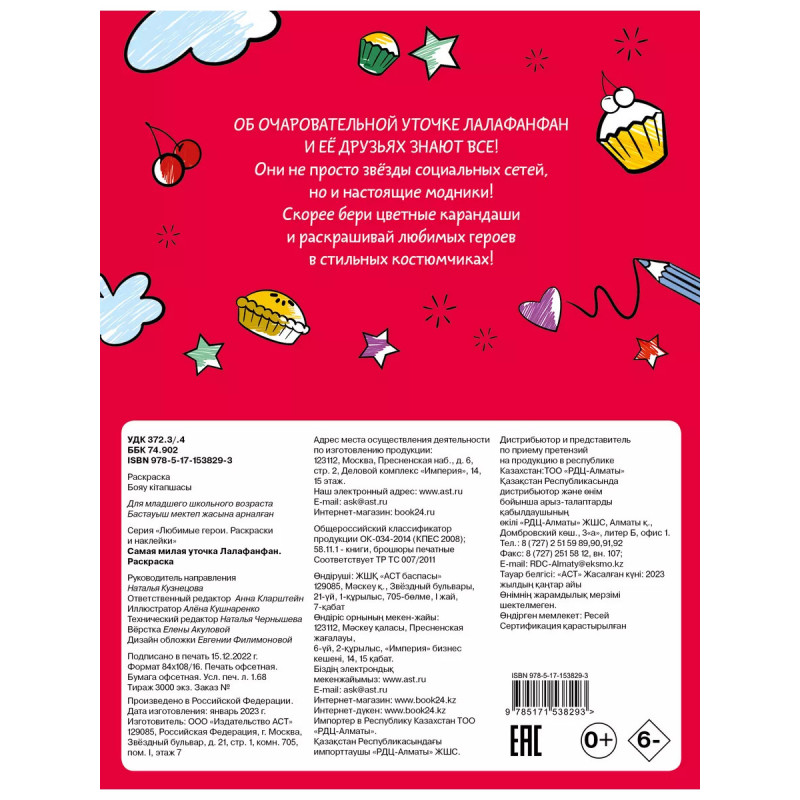 Самая милая уточка Лалафанфан. Раскраска. ОБ ОЧАРОВАТЕЛЬНОЙ УТОЧКЕ ЛАЛАФАНФАН И ЕЁ ДРУЗЬЯХ ЗНАЮТ ВСЕ! Они не просто звёзды социальных сетей, но и настоящие модники! Скорее бери цветные карандаши и раскрашивай любимых героев в стильных костюмчиках!