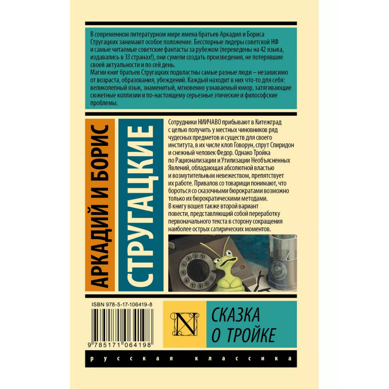 Сказка о Тройке. Сотрудники НИИЧАВО прибывают в Китежград с целью получить у местных чиновников ряд чудесных предметов и существ для своего института, в их числе: клоп Говорун, спрут Спиридон и снежный человек Федор. Однако Тройка по Рационализации и Утилизации Необъясненных Явлений, обладающая абсолютной властью и возмутительным невежеством, препятствует их работе. Привалов со товарищи понимают, что бороться со сказочными бюрократами возможно только их бюрократическими методами. В книгу вошел также второй вариант повести, представляющий собой переработку первоначального текста в сторону сокращения наиболее острых сатирических моментов.