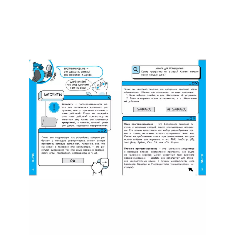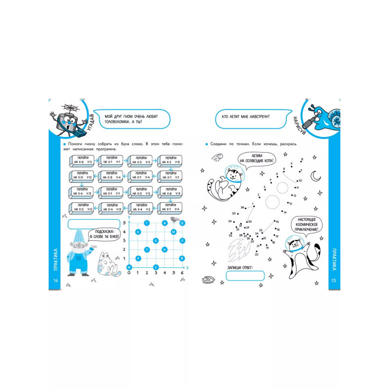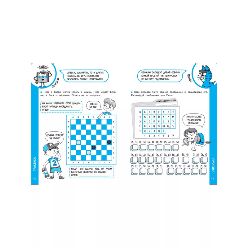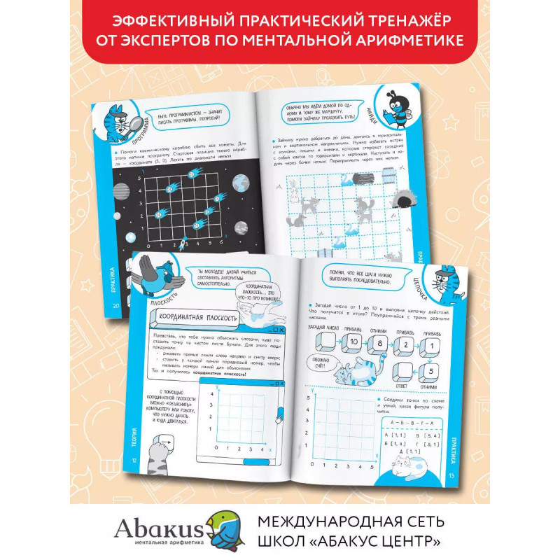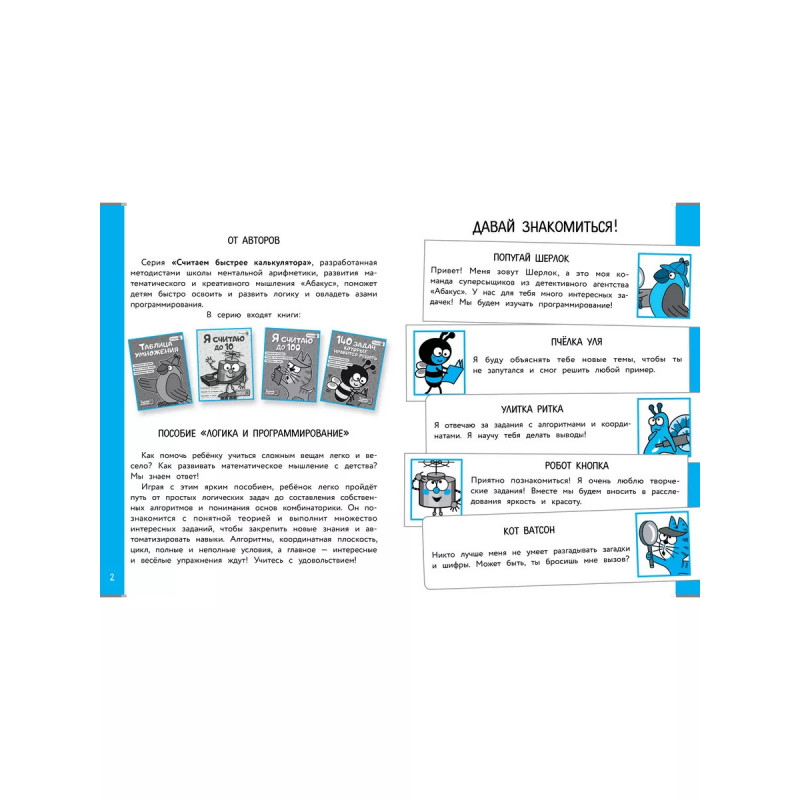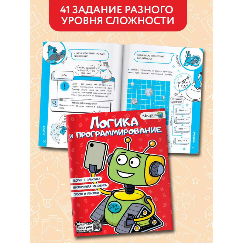 Логика и программирование. Эта тетрадь поможет дошкольникам и ученикам начальной школы приобрести важнейшие навыки - освоить логику и основы программирования. Как помочь ребёнку сделать это легко и весело? Как развивать математическое мышление с детства? Мы знаем ответ! Играя с этим ярким пособием, ребёнок легко пройдёт путь от простых логических задач до составления собственных алгоритмов и понимания основ комбинаторики. Он познакомится с понятной теорией и выполнит 100 интересных заданий, чтобы закрепить новые знания и автоматизировать навыки. Алгоритмы, координатная плоскость, цикл, полные и неполные условия, а главное - интересные и весёлые упражнения ждут! Учитесь с удовольствием! Серия "Считаем быстрее калькулятора" - это комплекс занятий, разработанный методистами школы ментальной арифметики "Абакус". Он поможет детям быстро освоить и развить навыки математического мышления.
