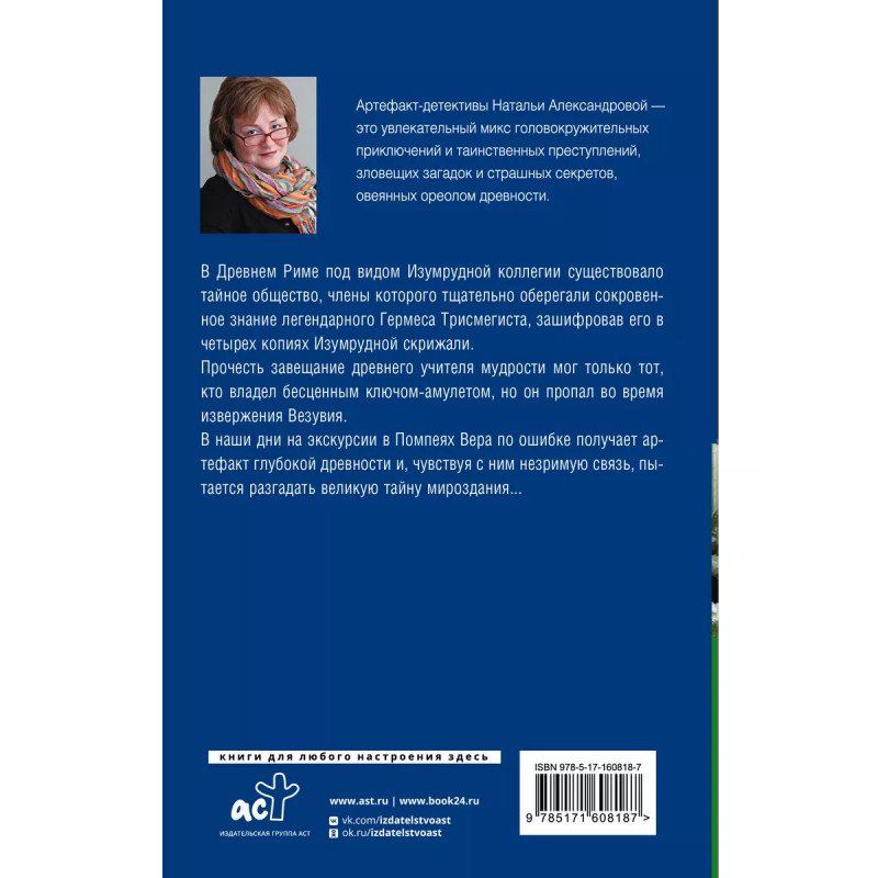 Хранитель изумрудной печати. В Древнем Риме под видом Изумрудной коллегии существовало тайное общество, члены которого тщательно оберегали сокровенное знание легендарного Гермеса Трисмегиста, зашифровав его в четырех копиях Изумрудной скрижали. Прочесть завещание древнего учителя мудрости мог только тот, кто владел бесценным ключом-амулетом, но он пропал во время извержения Везувия. В наши дни на экскурсии в Помпеях Вера по ошибке получает артефакт глубокой древности и, чувствуя с ним незримую связь, пытается разгадать великую тайну мироздания...