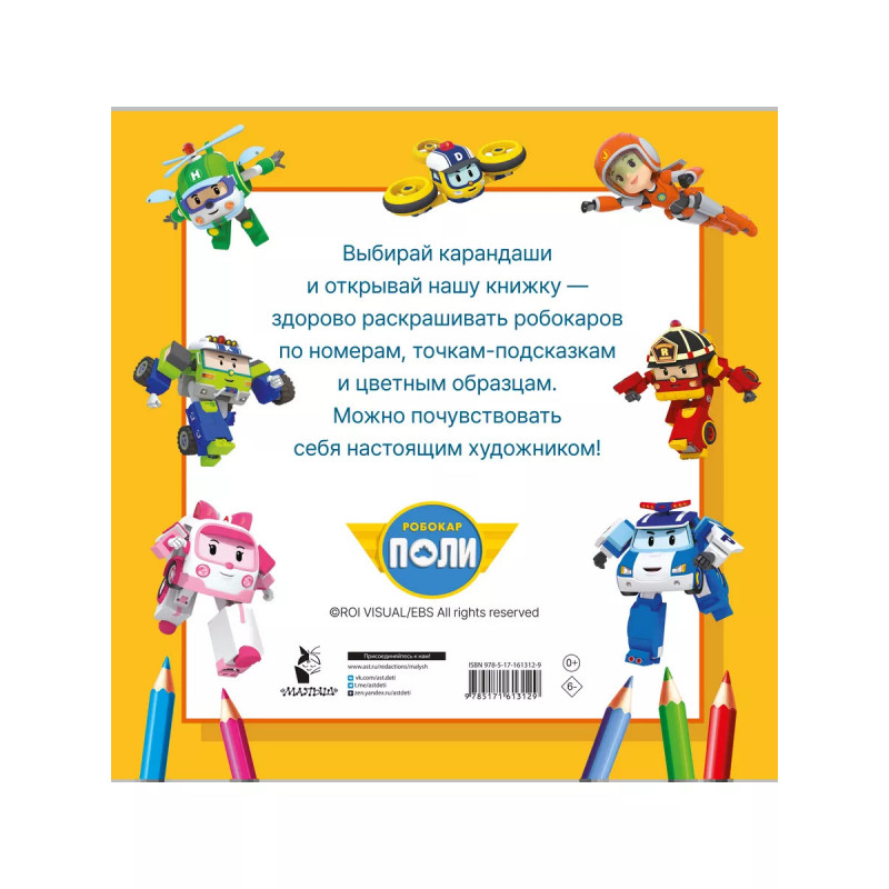 Робокар Поли и все-все-все машинки. Замечательная цветная книга из серии "Волшебный квадрат: большая раскраска" - это коллекция машинок из любимого мультика. На больших страницах - Робокар Поли, вертолётик Хэлли, пожарный Рой, скорая помощь Эмбер, подъёмный кран Лекки, грузовичок Бенни, школьный автобус Скулби, экскаватор Пок, почтовый автомобиль Пости, бульдозер Брунер, электрический автомобильчик Роди, бетономешалка Микки, контейнеровоз Терри и другие машинки. Раскраска придётся по душе всем маленьким фантазёрам, которые любят рисовать, раскрашивать и придумывать истории о новых приключениях машинок-спасателей. " Добрые сюжеты мульт-историй обрадуют и развеселят малыша, он почувствует себя самым настоящим маленьким волшебником, "оживляя" картинки - раскрашивая машинки-трансформеры. " Классные мультяшные картинки + интересные задания на смекалку, наблюдательность и воображение - всё для веселья и отличного настроения! " Чёткий контур, крупные картинки, красочные цветные образцы - замечательные иллюстрации позволят погрузиться в волшебный мир л