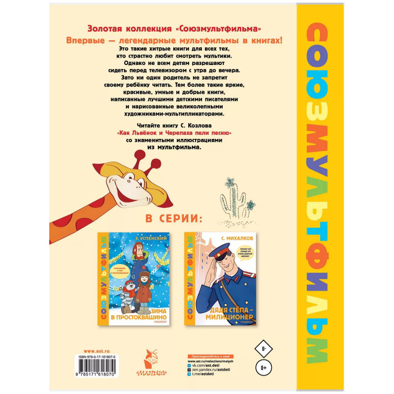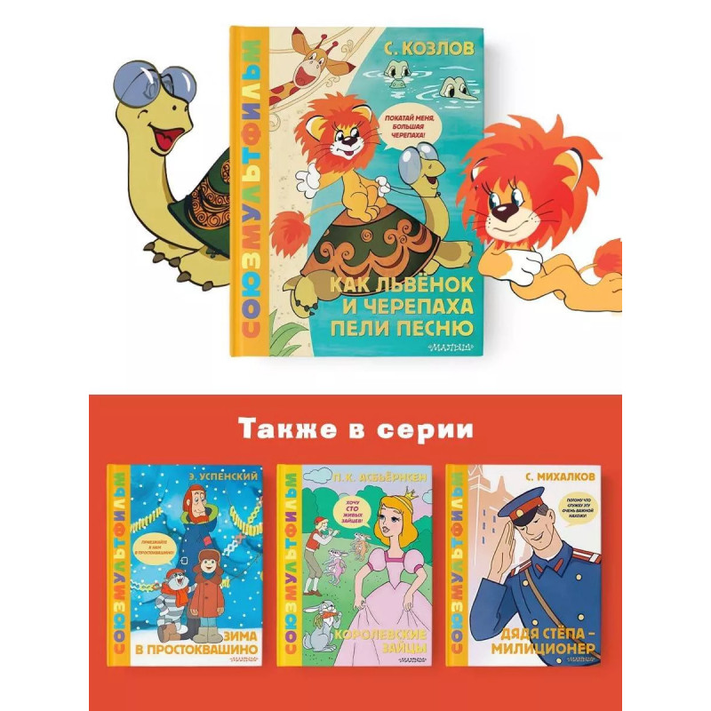 Как Львёнок и Черепаха пели песню. Союзмультфильм. Замечательный писатель Сергей Козлов написал сказки про Львёнка и Черепаху. По одной из них сняли мультфильм "Как Львёнок и Черепаха пели песню". В книгу вошла эта сказка с рисунками из мультика. Однажды Львёнок гулял и увидел Большууую Черепаху. Она пела такую хорошую песню, что просто невозможно было пройти мимо! Так началась дружба Львёнка и Черепахи. Читай книгу - смотри мультфильм!