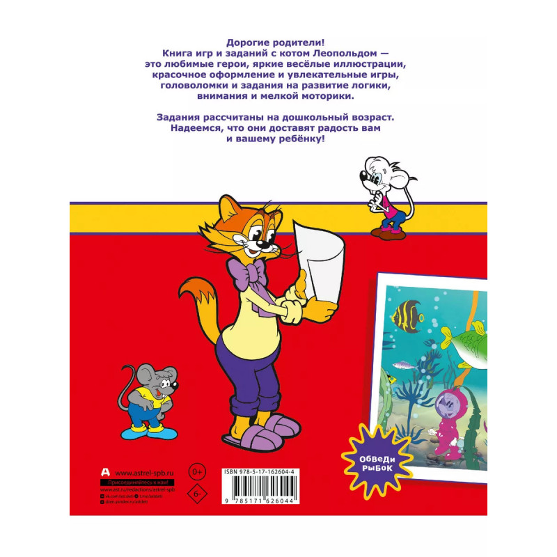 Книга игр и заданий с котом Леопольдом и мышатами - Белым и Серым - это прекрасный досуг с ребёнком. В нашей книге вы найдёте: упражнения на логику и внимание, лабиринты, ребусы, занимательные игры по поиску и сравнению, рисованию и раскрашиванию. Весёлые задания рассчитаны на дошкольный возраст. Надеемся, что они доставят радость вам и вашему ребёнку!