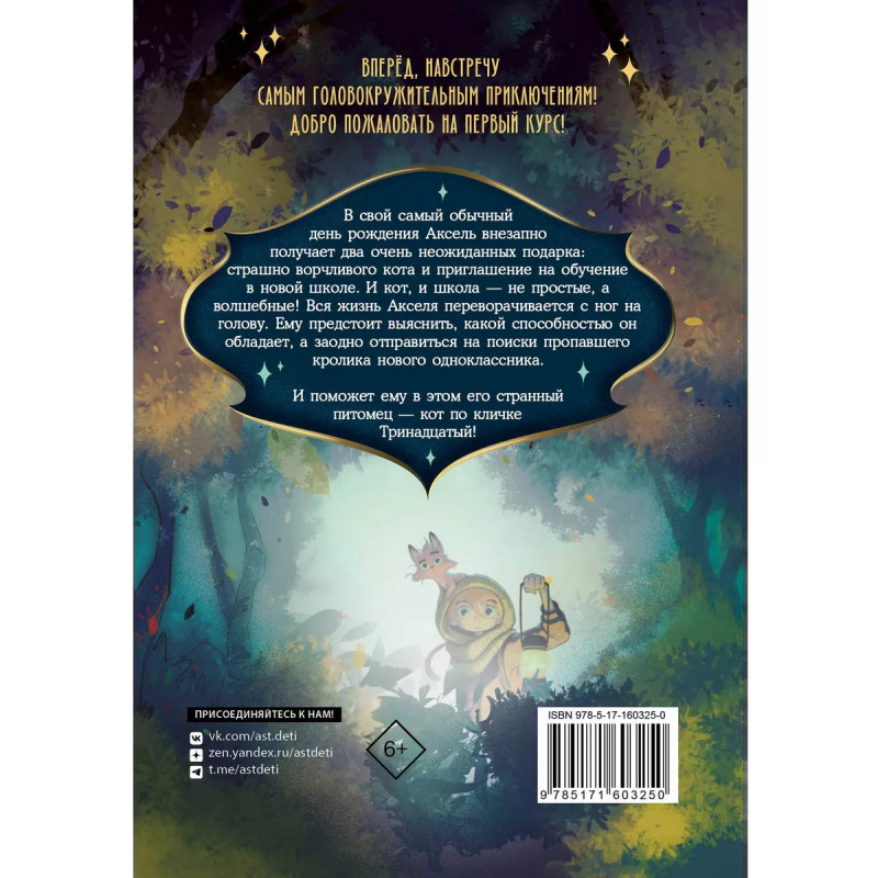 В свой самый обычный день рождения Аксель внезапно получает два очень неожиданных подарка: страшно ворчливого кота и приглашение на обучение в новой школе. И кот, и школа - не простые, а волшебные! Вся жизнь Акселя переворачивается с ног на голову. Ему предстоит выяснить, какой способностью он обладает, а заодно отправиться на поиски пропавшего кролика нового одноклассника. И поможет ему в этом его странный питомец - кот по кличке Тринадцатый! Вперёд, навстречу самым головокружительным приключениям! И добро пожаловать на первый курс!