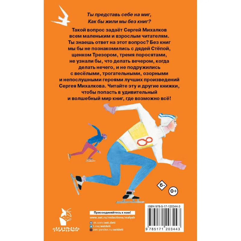 Ты представь себе на миг, Как бы жили мы без книг? Такой вопрос задаёт Сергей Михалков всем маленьким и взрослым читателям. Ты знаешь ответ на этот вопрос? Без книг мы бы не познакомились с Дядей Стёпой, щенком Трезором, тремя поросятами, не узнали бы, что делать вечером, когда делать нечего и не подружились с весёлыми, трогательными, озорными и непослушными героями лучших произведений Сергея Михалкова. Читайте эту и другие книжки, чтобы попасть в удивительный и волшебный мир книг, где возможно всё!