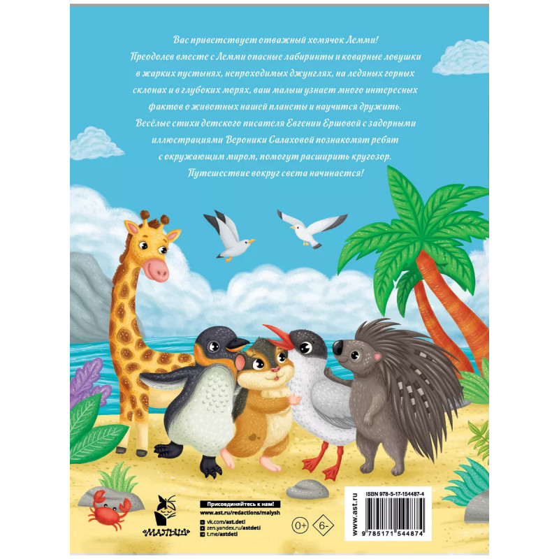 В этой книге собрано все, что любит ваш малыш, все самое необходимое для полезного досуга детей: увлекательная познавательная сказка в стихах про смелого хомячка Лемми, интересные факты о животных, красочные лабиринты и квесты-головоломки на самые разные темы. Книга обязательно заинтересуют вашего маленького почемучку. Вместе с симпатичным хомячком ваш малыш совершит веселое кругосветное путешествие и узнает, что Земля круглая. Занятия по книге помогут развить внимание, речь, наблюдательность, пространственное мышление, расширить кругозор. Красочные иллюстрации не оставят равнодушным даже самого требовательного и высокочувствительного ребенка. Плотные белые странички порадуют маленькие пальчики. Полезный подарок для любознательного непоседы!