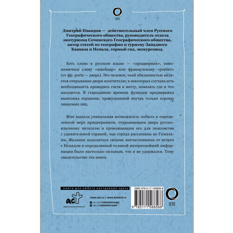 Непал. Путь к Эвересту. Автор книги - Дмитрий Иванцов - действительный член Русского Географического общества, руководитель отдела экотуризма Сочинского Географического общества, автор статей по географии и туризму Западного Кавказа и Непала, горный гид, экскурсовод. Это издание для тех, кто хочет узнать об удивительной стране Непал как можно больше. Автор не только делится своими впечатлениями и эмоциями от путешествий по Непалу, но и проводит глубокое исследование истории и культуры страны. Статьи о посещаемых местах дополнены фотографиями, что поможет читателю лучше представить страну и подготовиться к собственному путешествию.