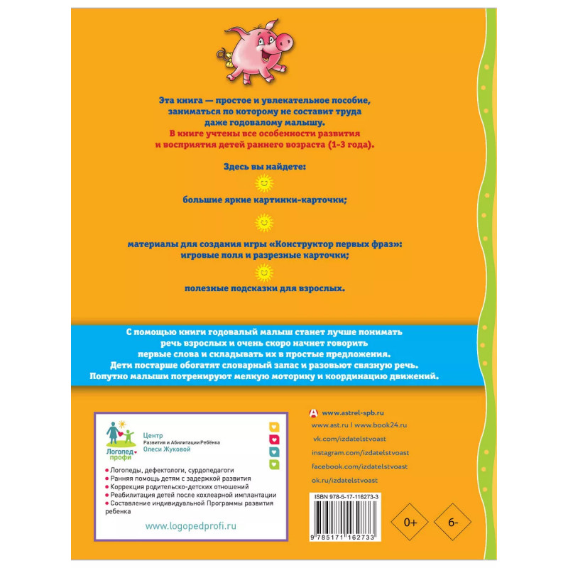 Первые слова. С помощью этой книги годовалый малыш станет лучше понимать речь взрослых и очень скоро начнет говорить первые слова и складывать их в простые предложения. Дети постарше обогатят словарный запас и разовьют связную речь. Попутно малыши потренируют мелкую моторику и координацию движений. Для детей до трех лет.
