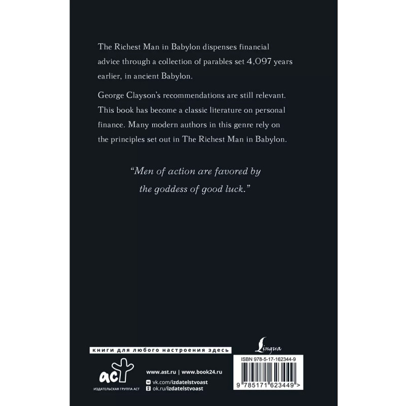 The Richest Man in Babylon. Скучно читать книги по финансовой грамотности? Джордж Клейсон еще в 1926 году написал "Самого богатого человека в Вавилоне", где поделился с читателями советами по распределению средств, используя для этого формат вавилонских притч. Клейсон использовал настоящие записи из Древней Месопотамии в качестве источников, поэтому можно сказать, что эта книга откроет вам древнейшие секреты успеха и обогащения. Но даже если вы не заинтересованы в улучшении своего материального блага, то все-равно сможете насладиться занимательными притчами на английском языке.