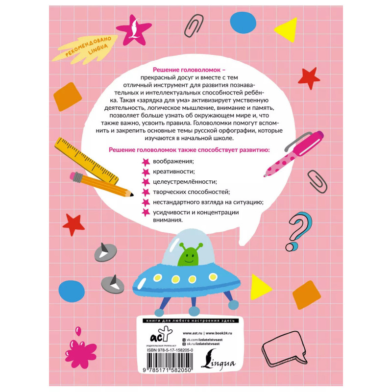 Орфографические головоломки: кейворды, ребусы, загадки. В этой книге вы найдете кейворды, ребусы, загадки и другие виды заданий, которые помогут ребенку освежить и закрепить знания в области русской орфографии. Увлекательные упражнения охватывают основные темы, которые проходят в начальной школе. Это сочетания ЖИ-ШИ, ЧА-ЩА, суффиксы существительных, безударные гласные и другие орфограммы. Для удобства родителей, преподавателей и детей в конце даны ключи к заданиям, чтобы можно было проверить себя. Издание предназначено для детей младшего школьного возраста, будет интересно родителям и учителям.