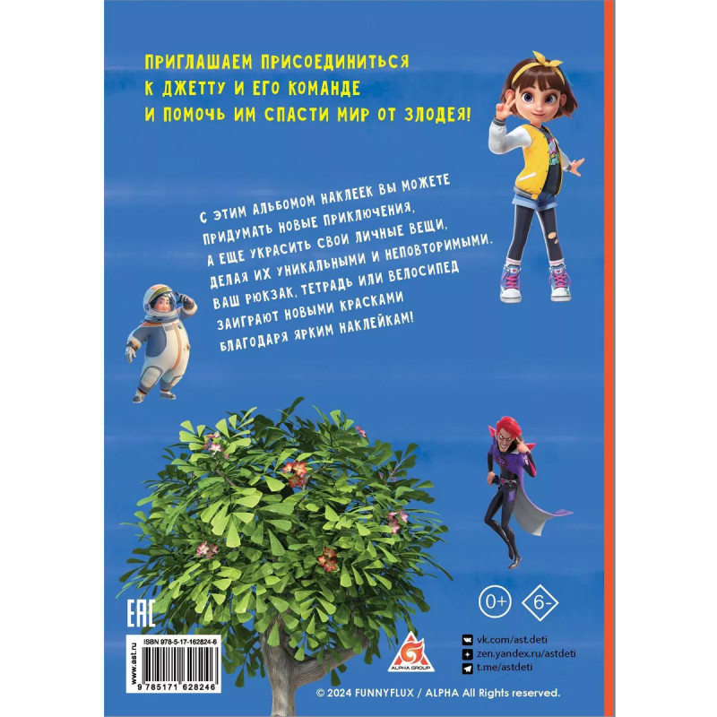 Приглашаем присоединиться к Джетту и его команде и помочь им спасти мир от злодея! С этим альбомом наклеек вы можете придумать новые приключения, а еще украсить свои личные вещи, делая их уникальными и неповторимыми. Ваш рюкзак, тетрадь или велосипед заиграют новыми красками благодаря ярким наклейкам!