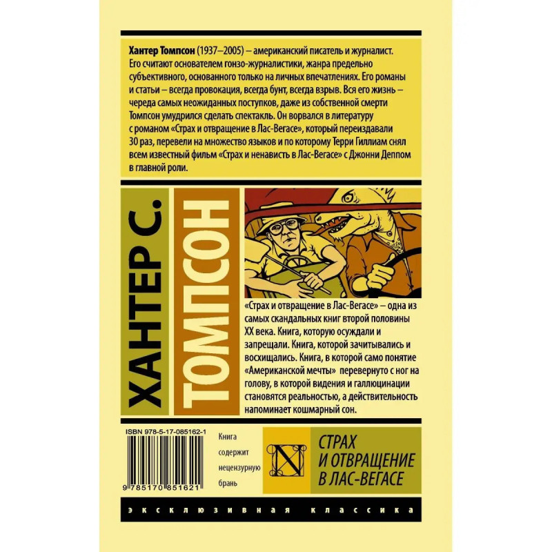 "Страх и отвращение в Лас-Вегасе" одна из самых скандальных книг второй половины ХХ века. Книга, которую осуждали и запрещали. Книга, которой зачитывались и восхищались. Книга, в которой само понятие "Американской мечты" перевернуто с ног на голову, в котором видения и галлюцинации становятся реальностью, а действительность напоминает кошмарный сон.