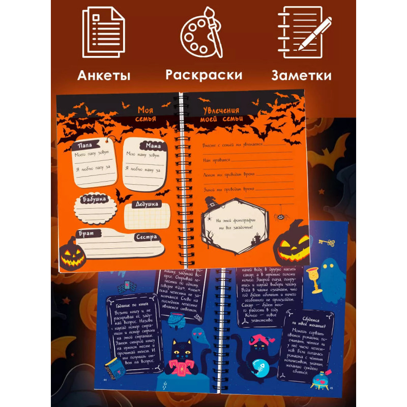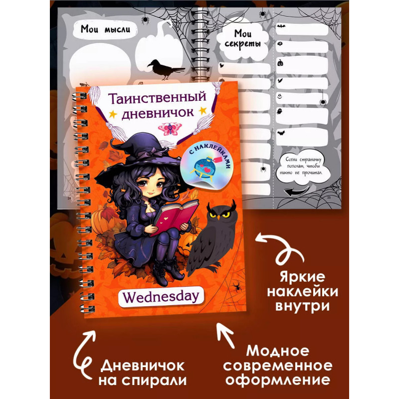 Таинственный дневничок. Wednesday красивый дневничок на удобной спирали, который точно понравится любой девочке. Под обложкой множество интересных анкет для хозяйки дневника, её подру г и друзей, тесты, астрологические предсказания, страницы для записи секретов и многое другое. Заполняя странички, девочка определит, что ей нравится, а что нет, сможет сохранить самые яркие воспоминания, составит планы на будущее и узнает о себе много нового. Страницы в готическом стиле можно оформить по своему вкусу и украсить стильными наклейками. То, что нужно для загадочных и таинственных девчонок!